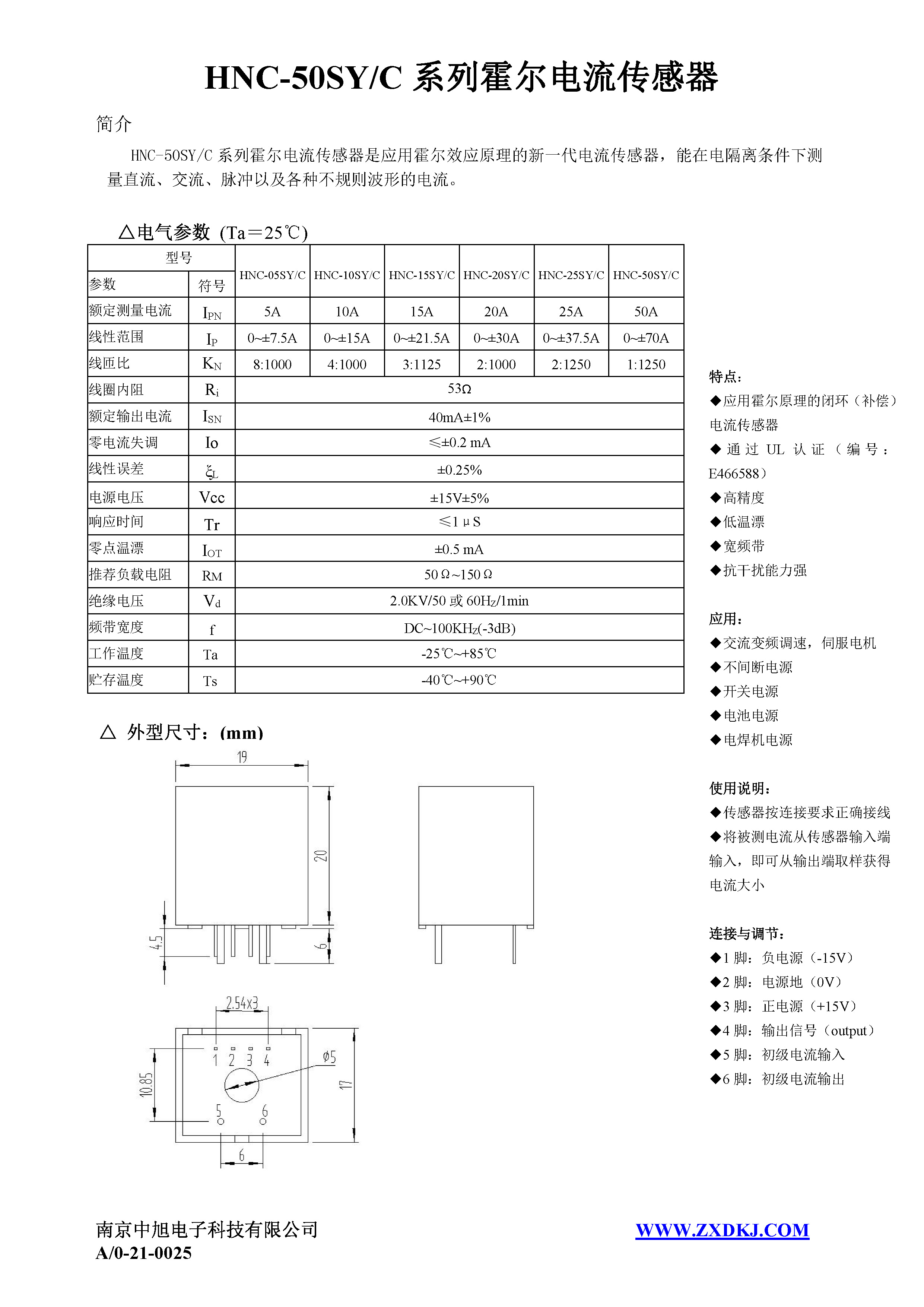 HNC-25SY/C series Hall current sensor is a new generation of current sensor using the principle of Hall effect. It can measure currents of DC, AC, pulse and various irregular waveform under electrical isolation.